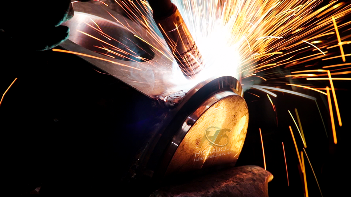 A soldagem em cilindros hidráulicos na Hidraucaf é realizada com máxima precisão e expertise técnica.
